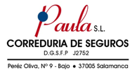 CORREDURIA DE SEGUROS Y ASESORES PAULA S.L., Inscrita en el Registro Mercantil de Salamanca, Tomo 390, Libro 0, Folio 38, Hoja SA-12697, Hoja Bis, Inscripción 2, CIF. 37478146, Autorización DGSFP, J2752, Adaptada a la Ley 26/2006, de 17 de julio de mediación de seguros y reaseguros privados.